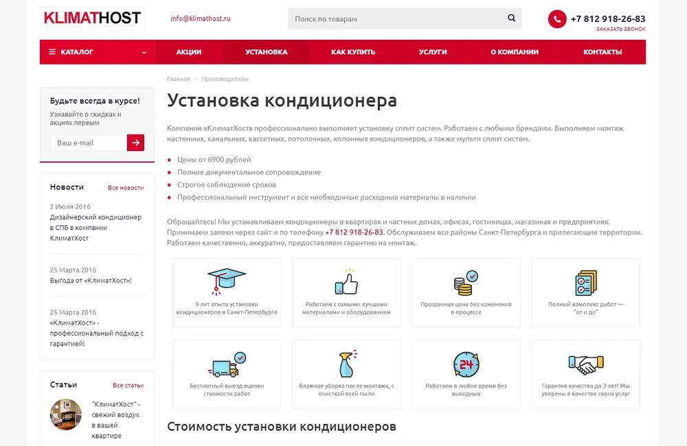 • Проанализирована ниша магазинов климатического оборудования