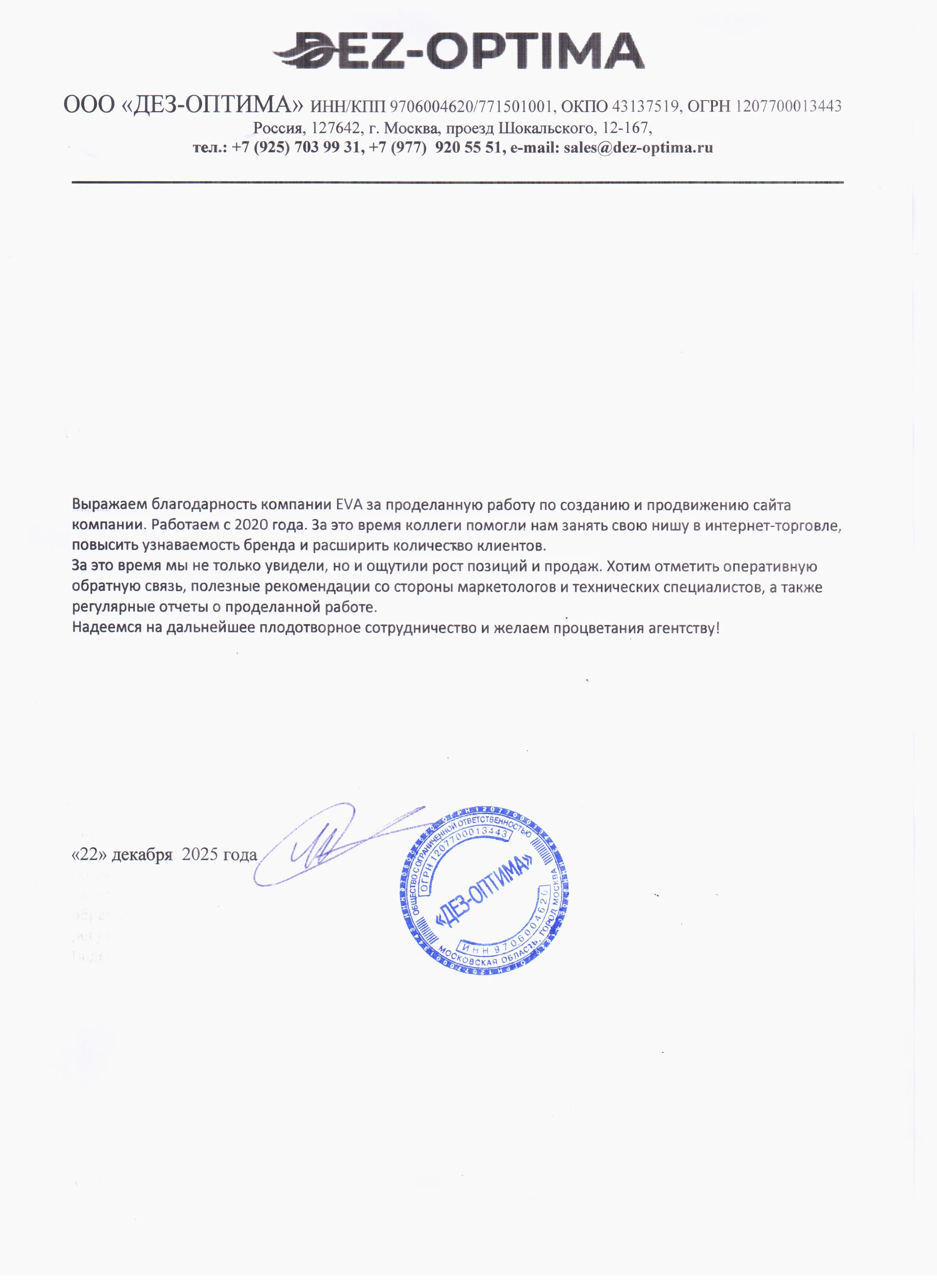 Создание сайта, дизайн, работа над репутацией компании, продвижение сайта